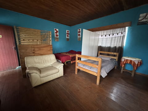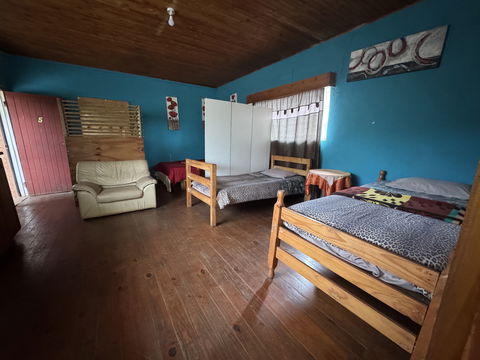 Accommodation is relaxed and varied, with options to suit different kinds of travellers. We offer a private family suite, five wooden cabins, a three-bedroom house, and a family unit (please note: no under 18s at the Backpackers). Most rooms make use of shared bathrooms, along with our communal kitchen, lounge, and entertainment area — complete with a pool table and foosball table for easy evenings and new friendships.